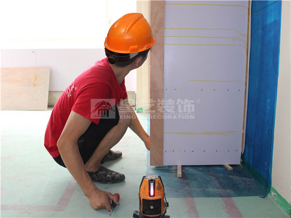 衣柜固定應用紅外線水平儀調平,再用木楔釘入確保穩(wěn)固。